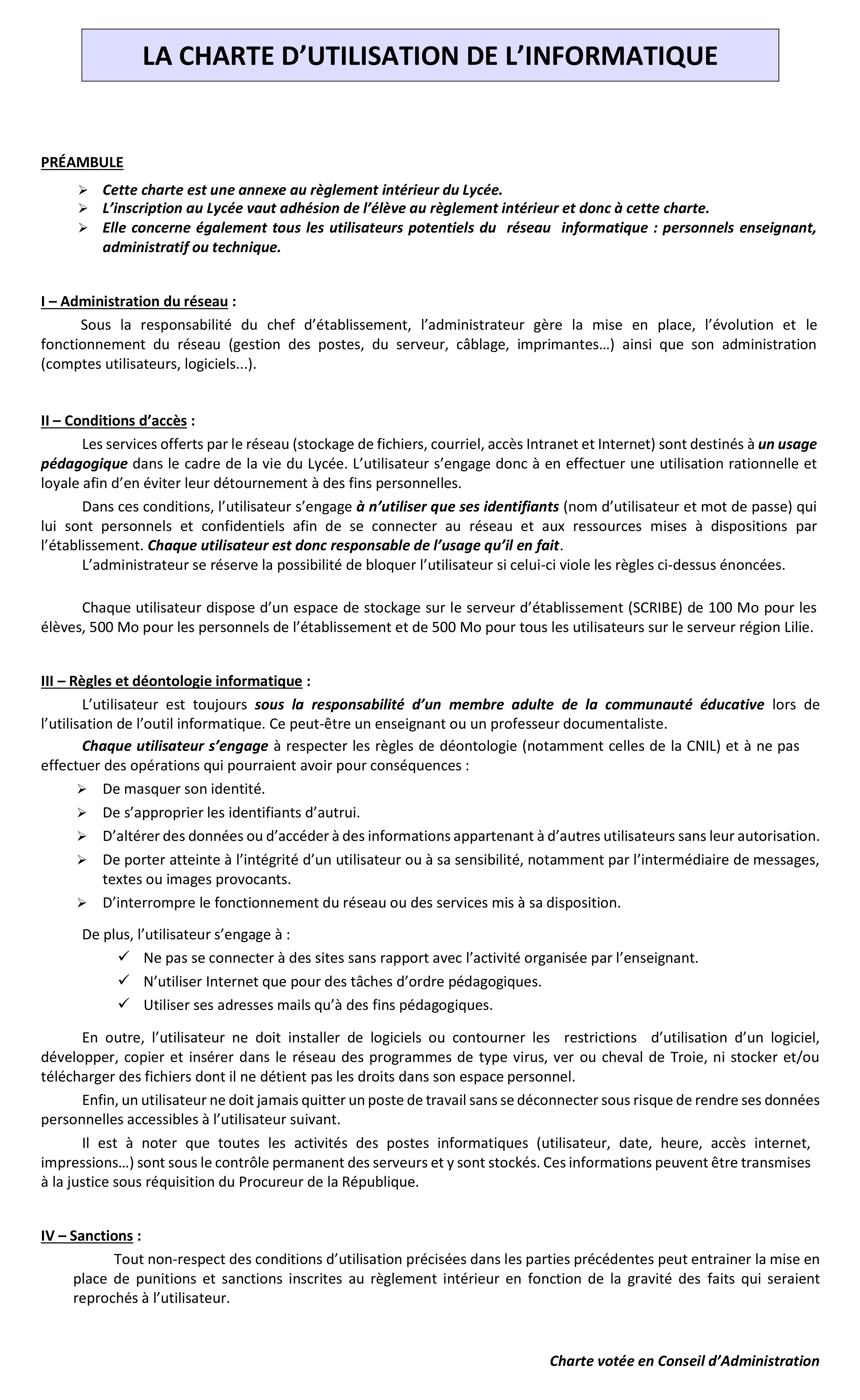 Charte sur l’informatique